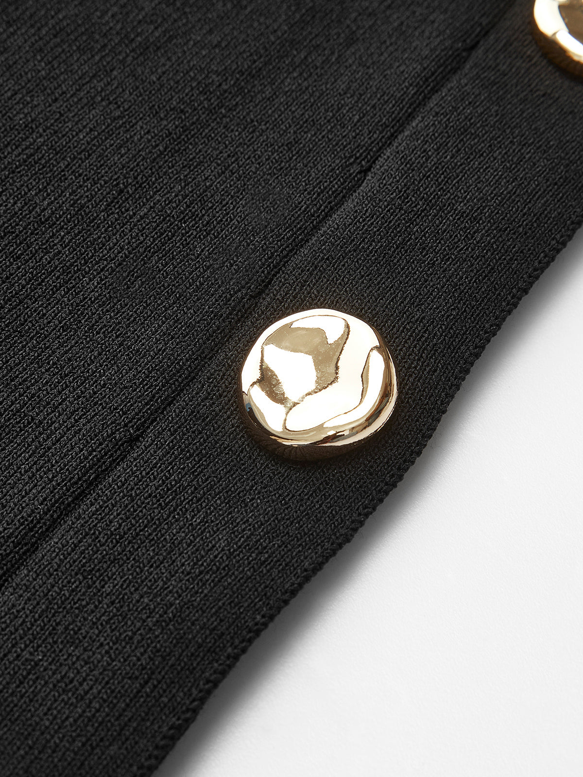 Eşsiz Tasarım: Metal düğmeleri ile bu örgü üst, her kıyafete bir dokunuş zarafet ve ayrımcılık katar.