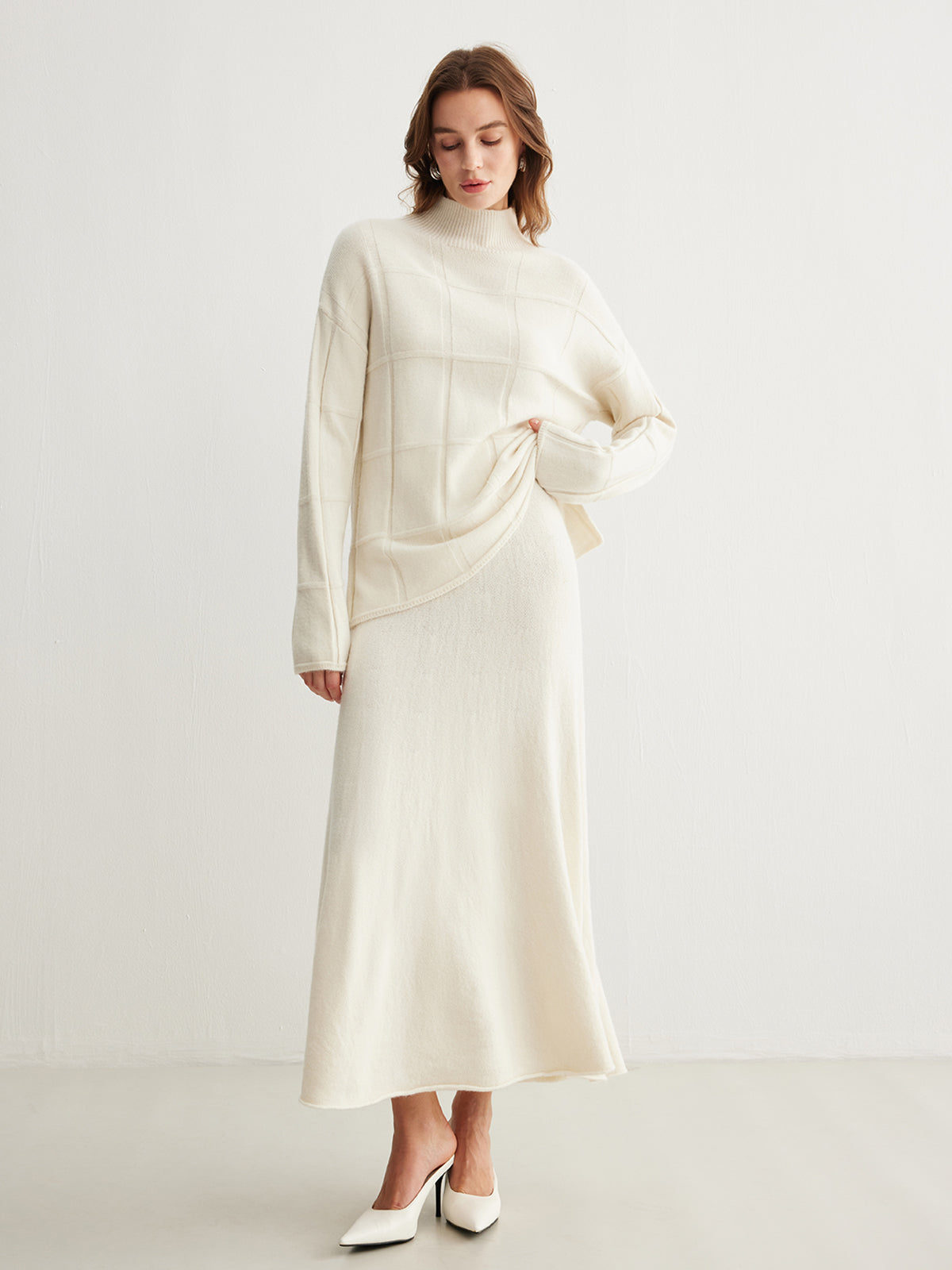 Yüksek Yaka Düz Kazak Etek Takımı