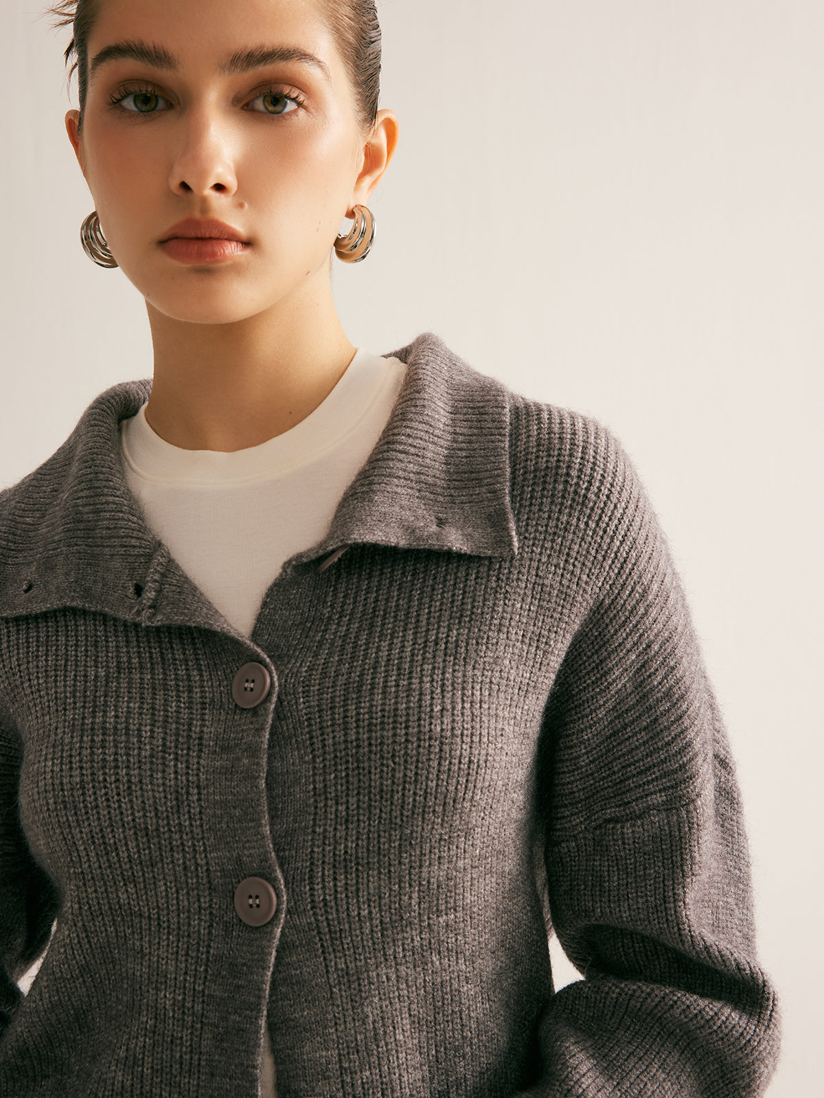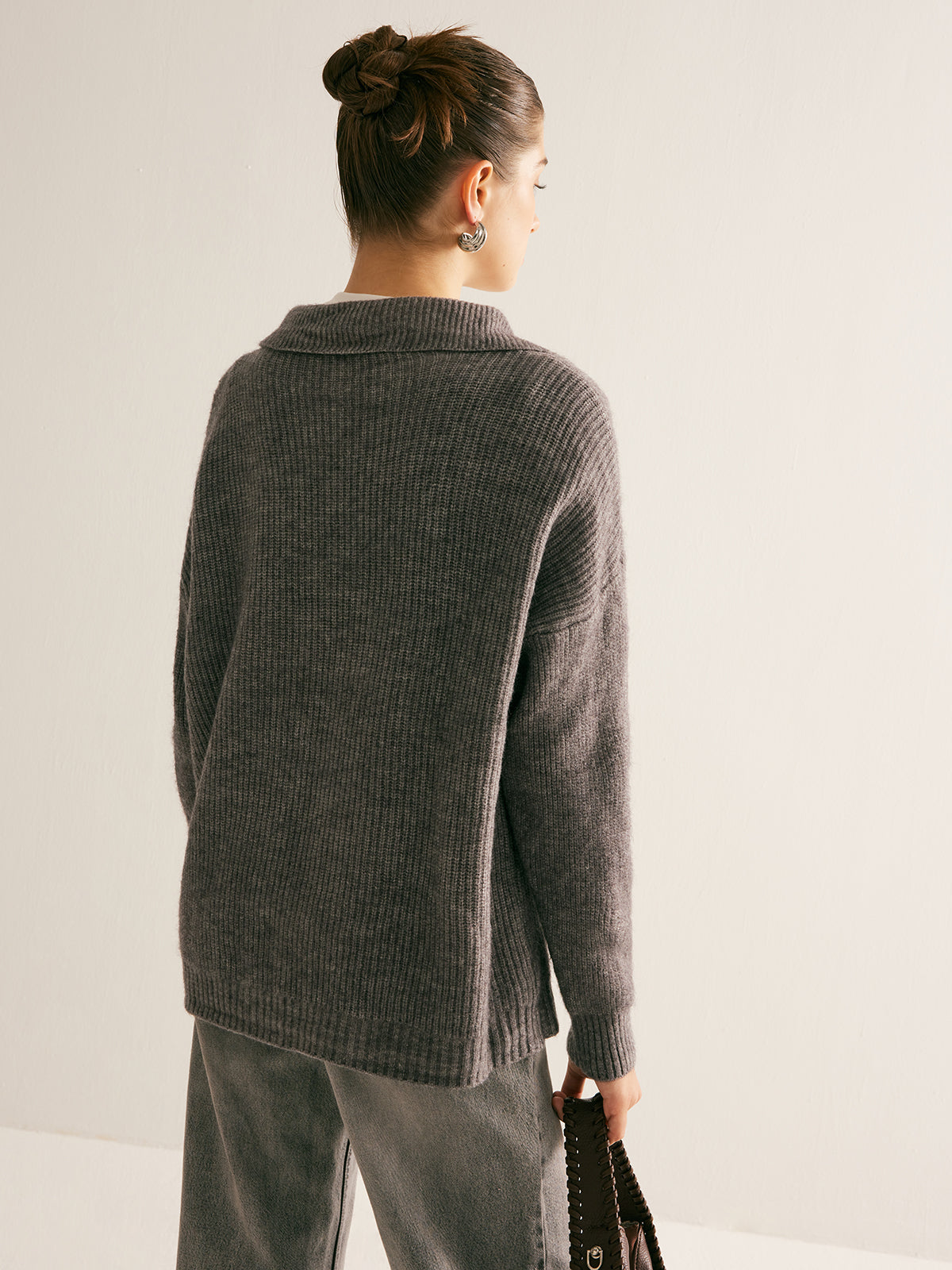 Şık Kontrast Detaylı Metal Aksanlı Midi Kazak Elbisesi