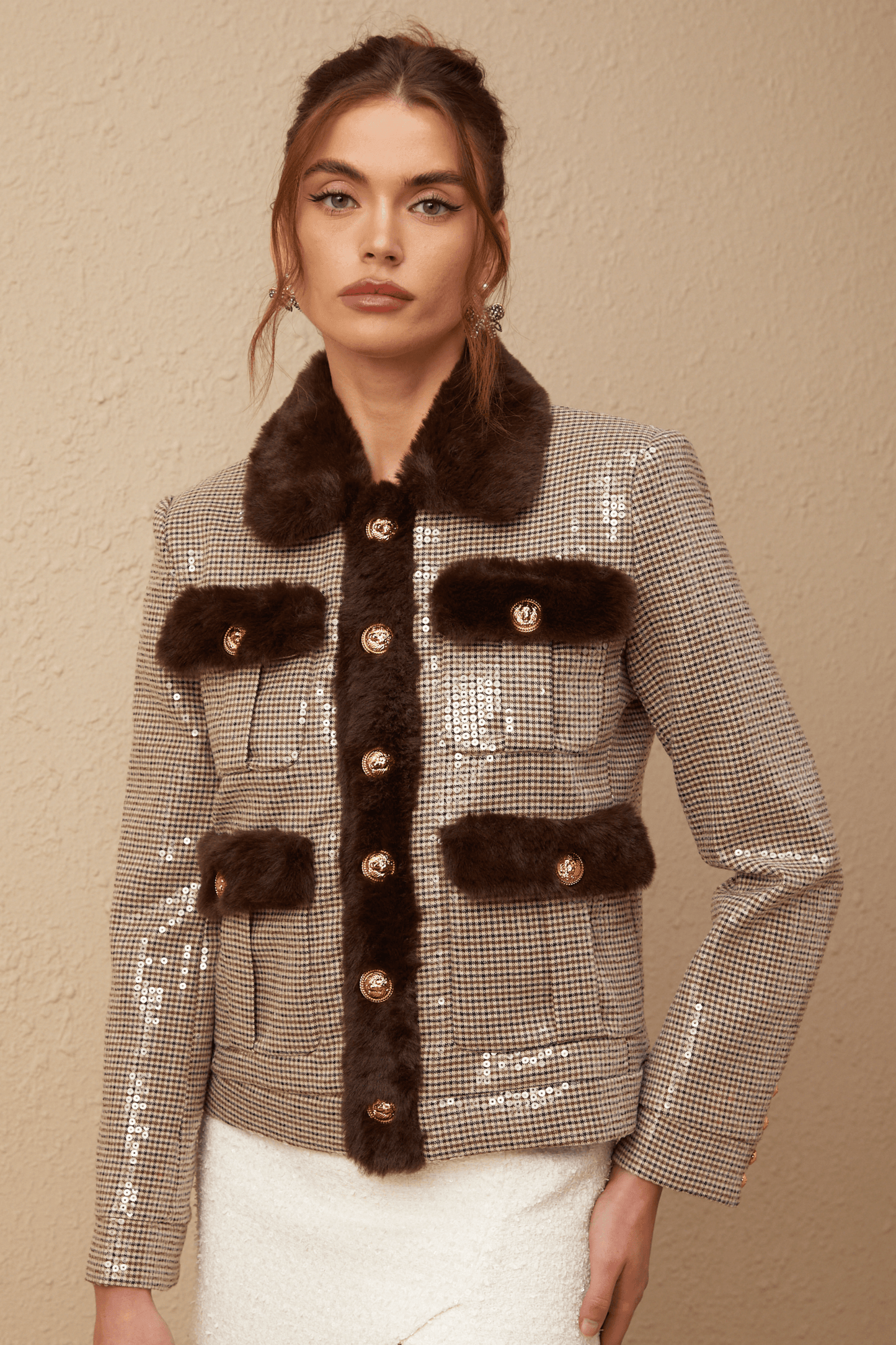 Şık Ekose Kazak Elbisesi Şık Kemerli Tasarım ile