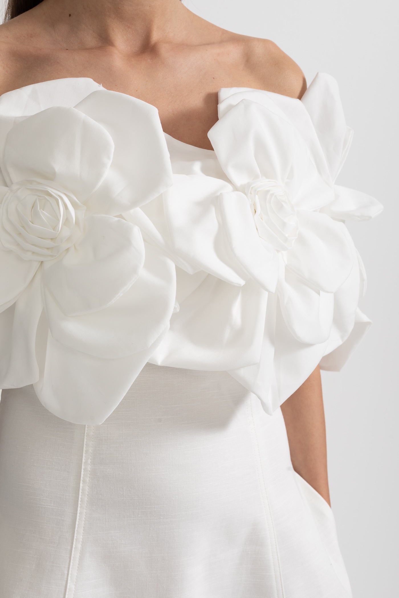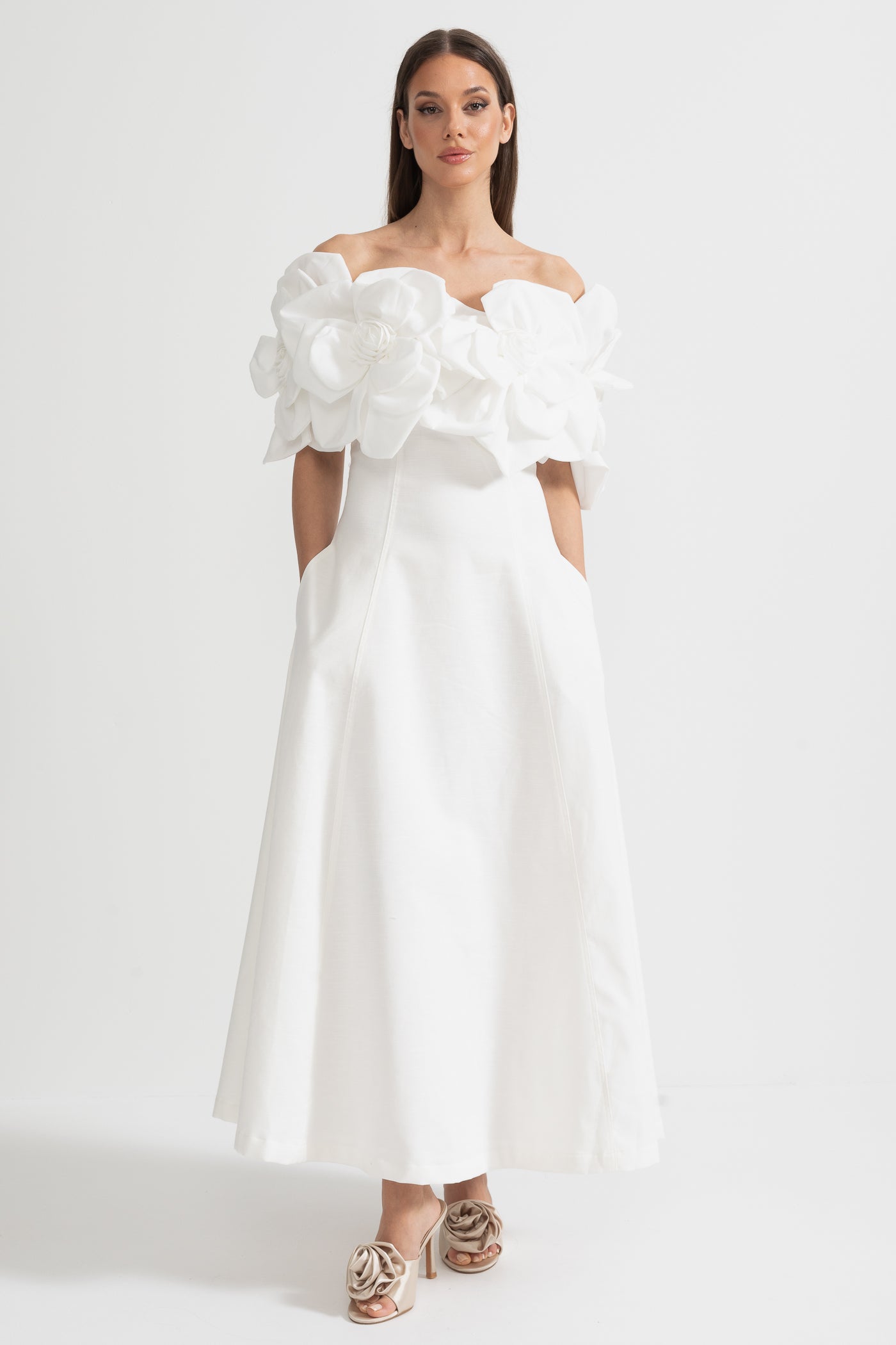 V Yaka Döktuçe Yüksek Kol Düğmeli Dar Elbise