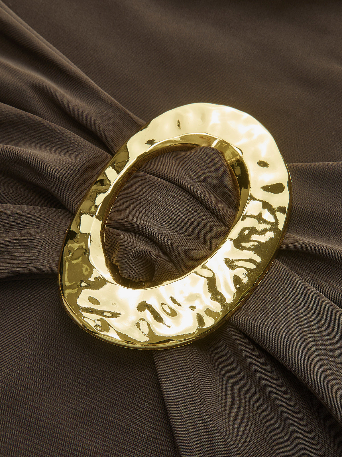 Şık Kontrast Detaylı Metal Aksanlı Midi Kazak Elbisesi