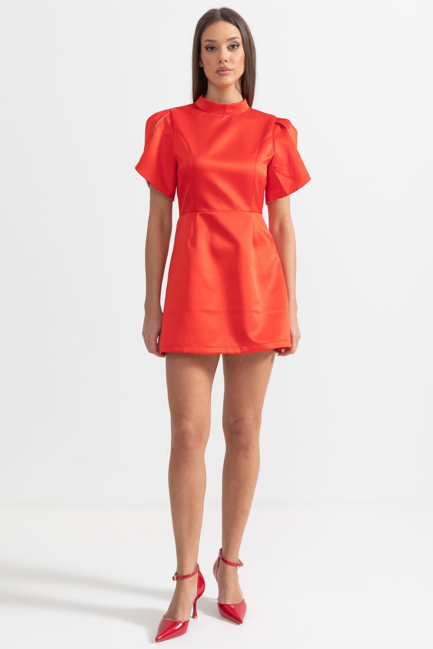 V Yaka Döktuçe Yüksek Kol Düğmeli Dar Elbise