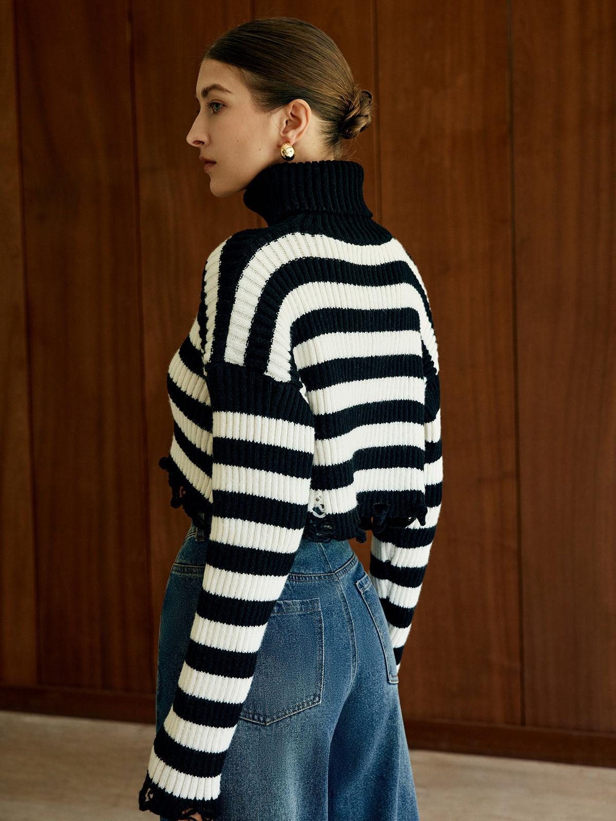 Zamansız çizgiler ve modern bir duruş! Siyah beyaz renklerin mükemmel uyumuyla tasarlanmış bu boğazlı triko kazak, soğuk günlerde tarzınıza sıcaklık katacak. Şıklık ve rahatlık bir arada