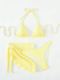 3 Parça Bikini Ve Düğümlü Mini Etek Takımı