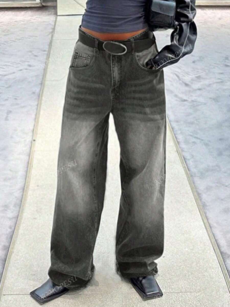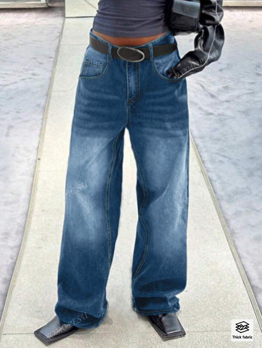 Orta Bel Düz Paça Rahat Kot Pantolon