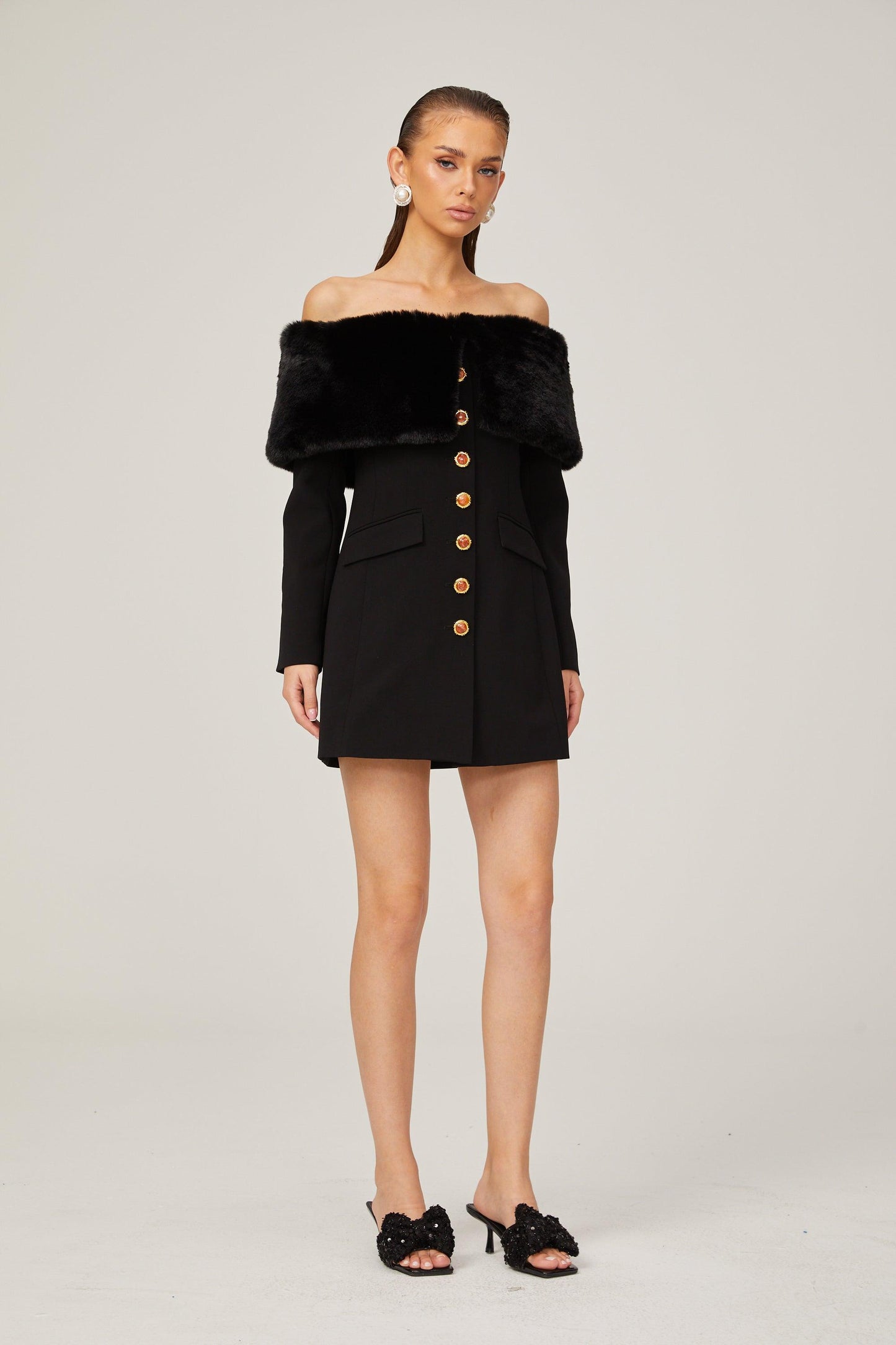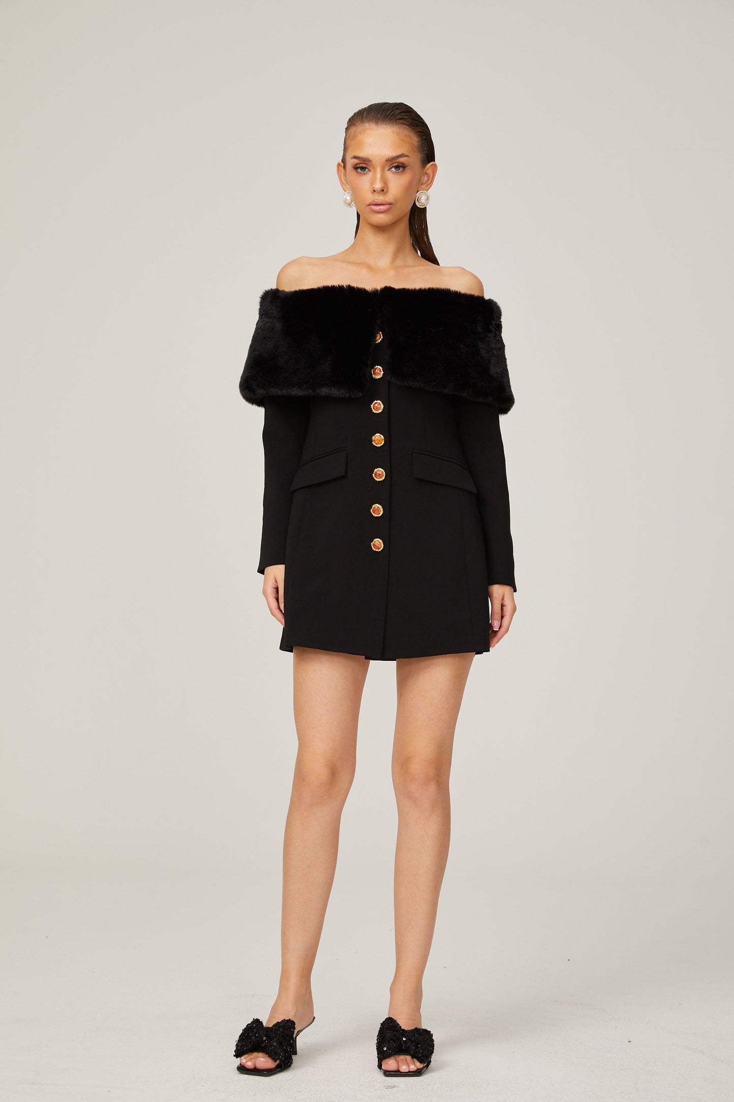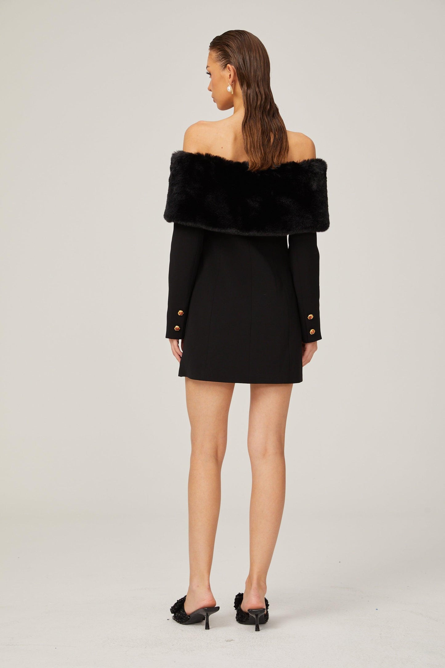 V Yaka Döktuçe Yüksek Kol Düğmeli Dar Elbise