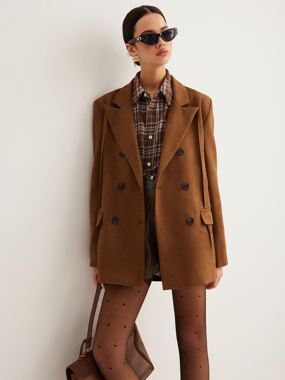 Vintage Caramel Double-Breasted Ceket, klasik şıklığın ve sıcak tonların buluştuğu zarif bir tasarım sunuyor. Oversize kesimi ve kruvaze düğme detayları, ceketi modern bir silüetle birleştirirken konforu da beraberinde getiriyor. İster günlük kombinlerinizde, ister özel etkinliklerde sofistike bir hava yaratmak için mükemmel bir tercih!