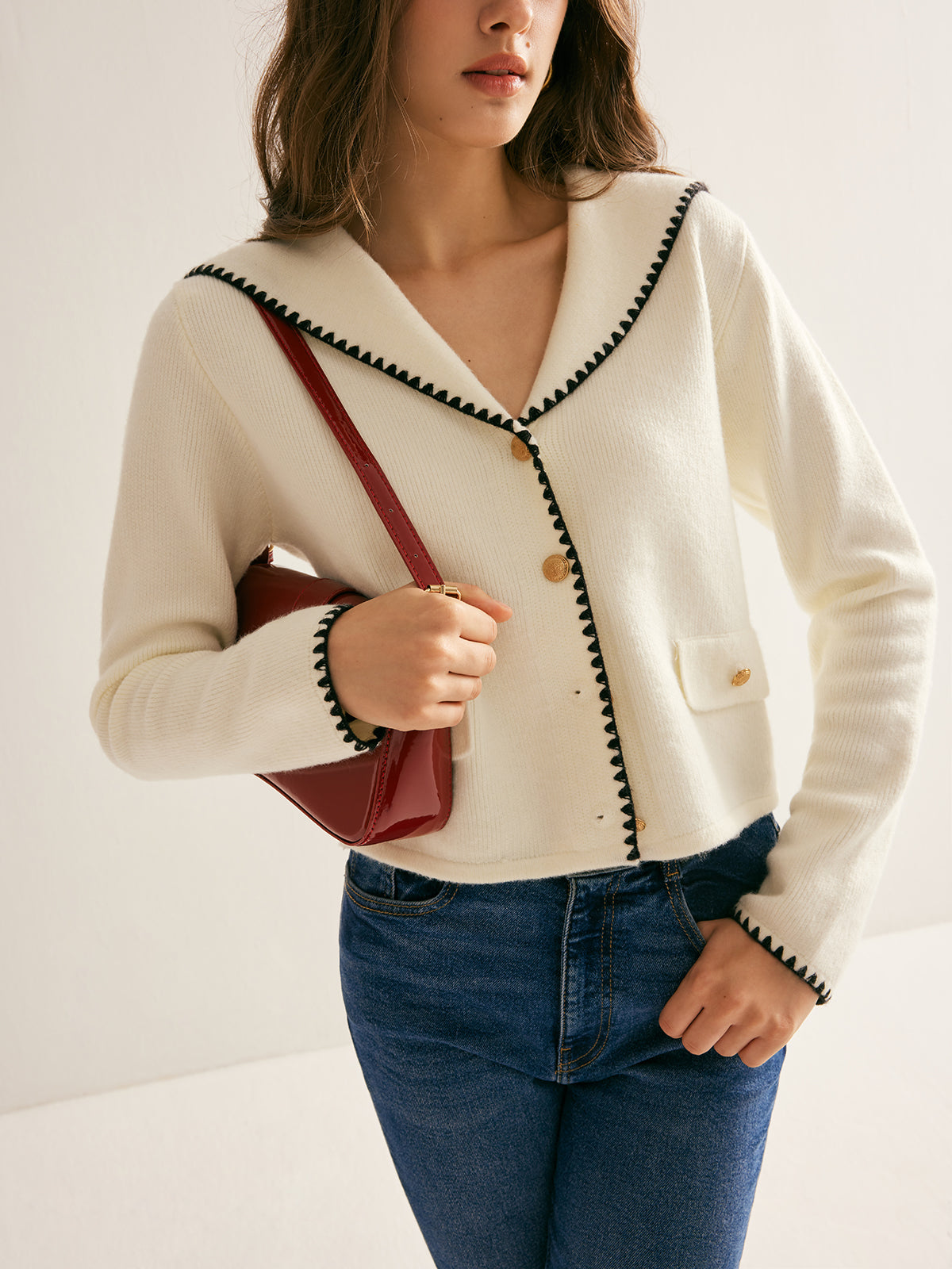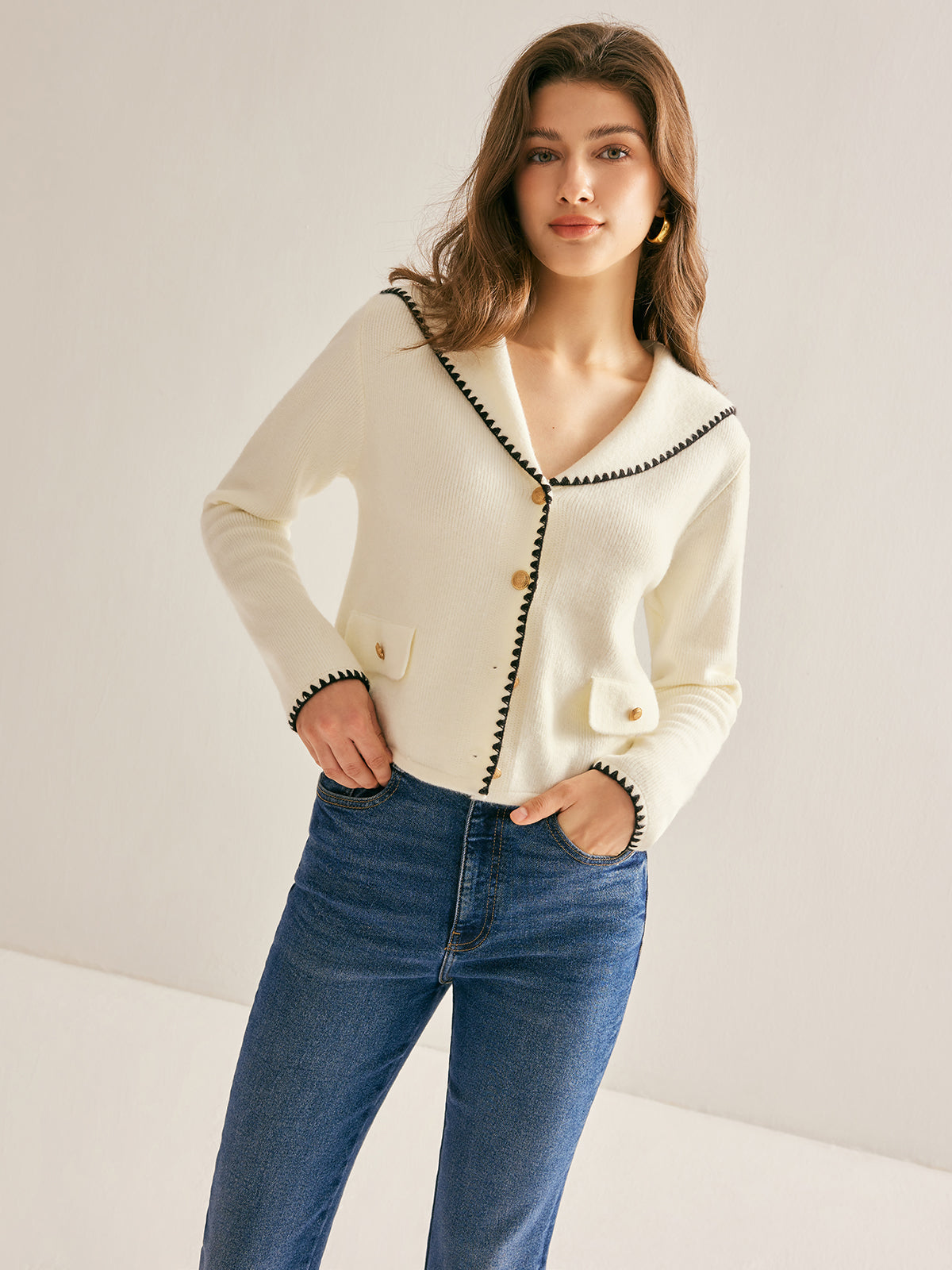 Şık Kontrast Detaylı Metal Aksanlı Midi Kazak Elbisesi